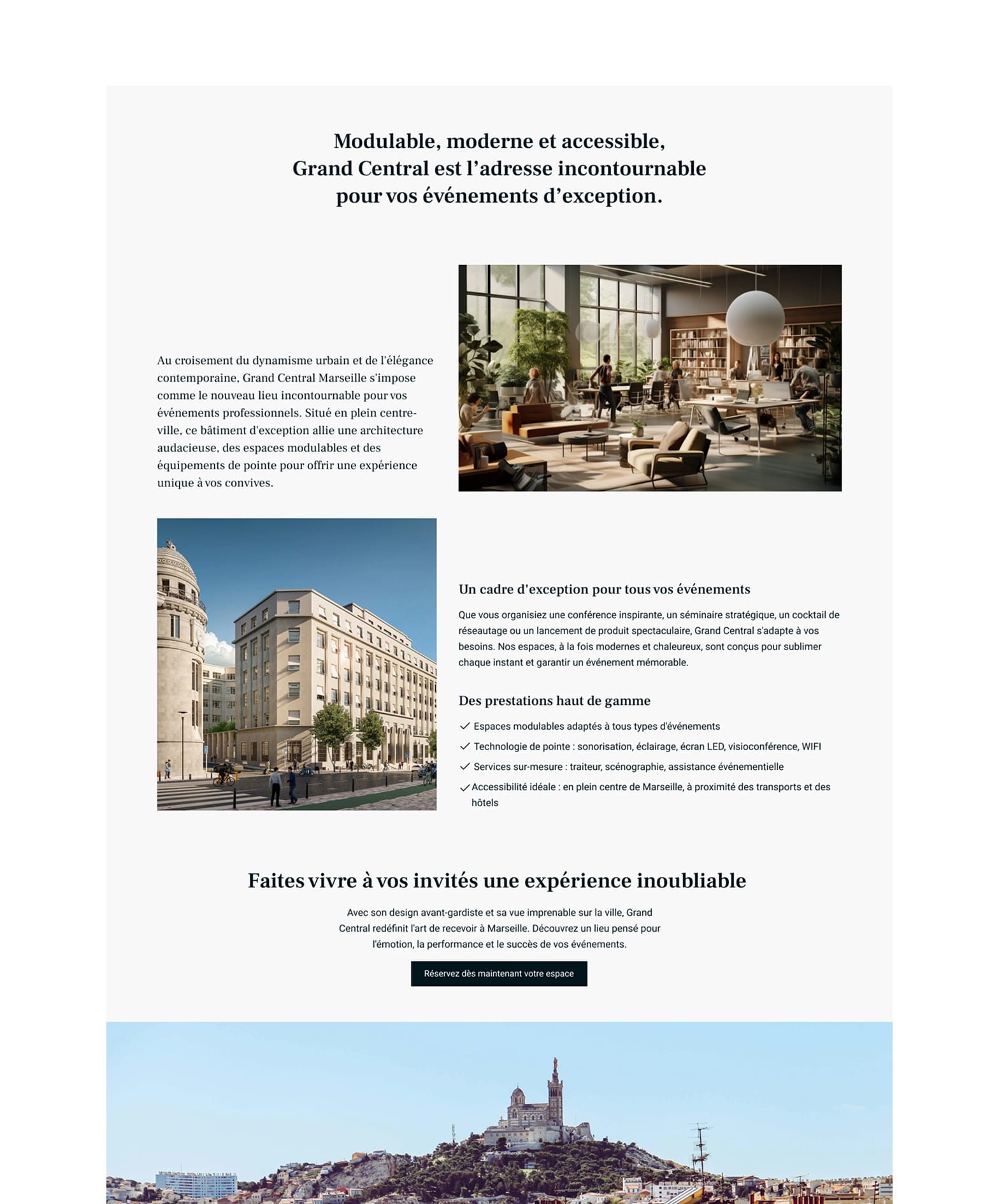 Website creation for Grand Central, an iconic building in the heart of Marseille.