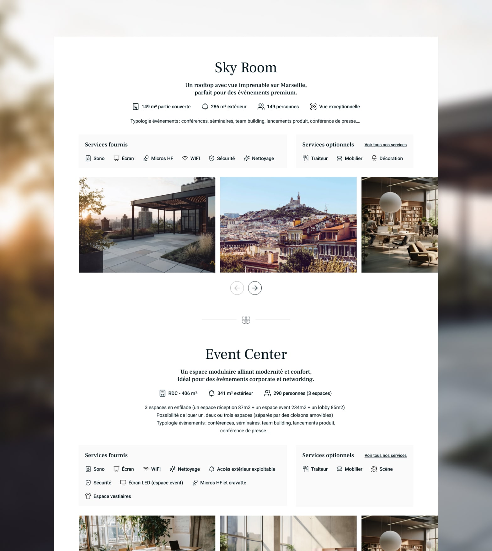 Process : – Analyze the needs of future site users to provide a smooth and intuitive navigation for those looking to rent a space. – Propose a modern and clean visual identity. – Design wireframes and validate the user journey. – Create final mockups and prototype the interface.