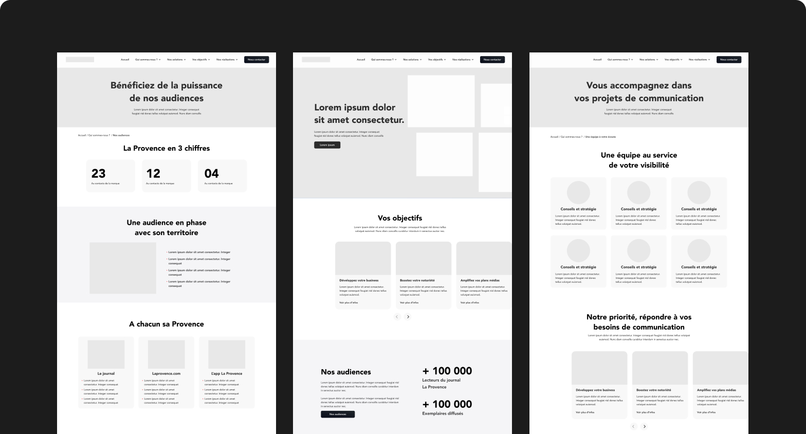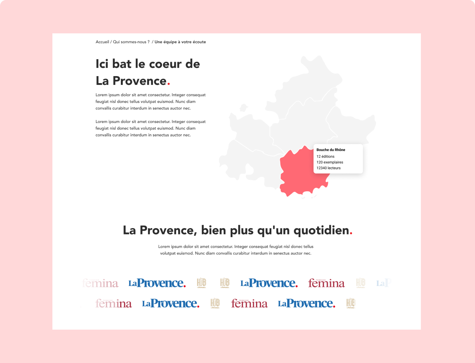 Redesign of La Provence Médias website, the advertising division of the La Provence group, managing ads across all group platforms.
