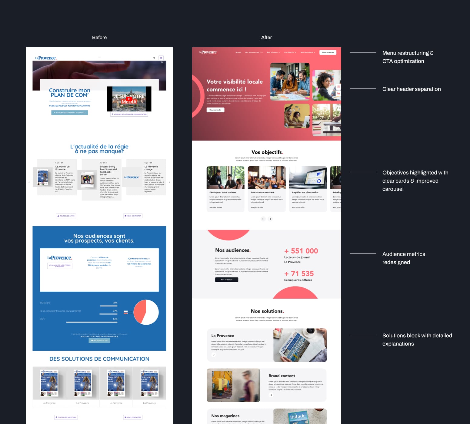 Challenge: How can we modernize the La Provence Médias website to strengthen its image as an advertising agency and showcase its range of services?